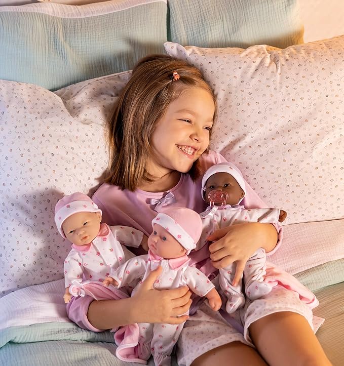 Boneca La Baby Mini é leve e fácil de segurar, carregar e abraçar para as mãozinhas dos pequenos. Sem perfume e lavável para facilitar a limpeza.