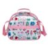 Lancheira 3D; Compartimento único com zíper e forro interno; Alça superior reforçada e alça de ombro ajustável de 120 cm; Design frontal em 3D
