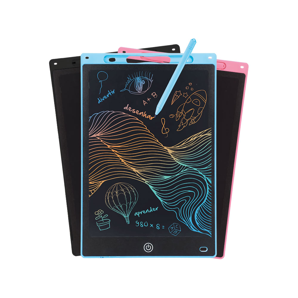 Tablet 10 de Desenho e Escrita colorida, com caneta marcador para obter divertidos efeitos coloridos. Botão de apagar imediato para poderes recomeçar de novo. A brincar a criança estimula a imaginação.